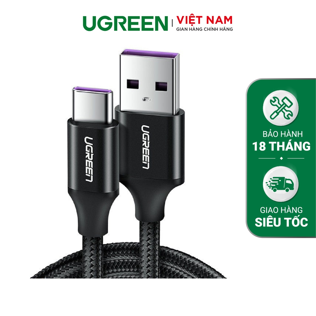 Cáp sạc Type C UGREEN US253 Sạc nhanh dòng 5A, truyền dữ liệu tốc độ cao - Đen-Type C-1