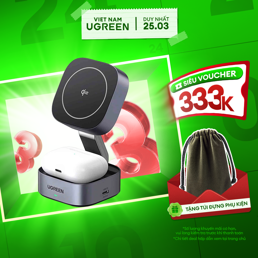 Sạc cho điện thoại tai nghe,đồng hồ Qi 15W màu ghi xám đầu cắm USB-C PD