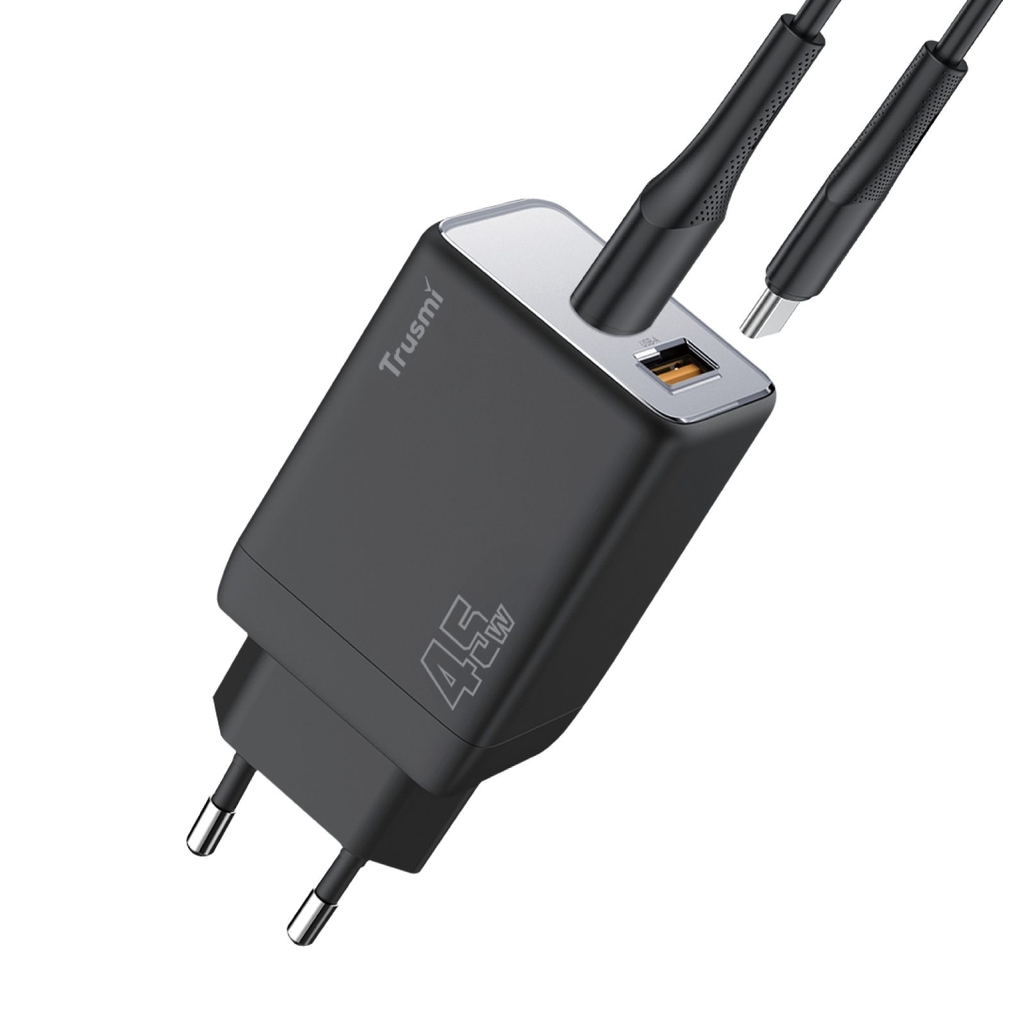 Trusmi Sạc nhanh GAN mini PD45W A+2C kèm cáp C TO C 60W (EU) | Black+silver